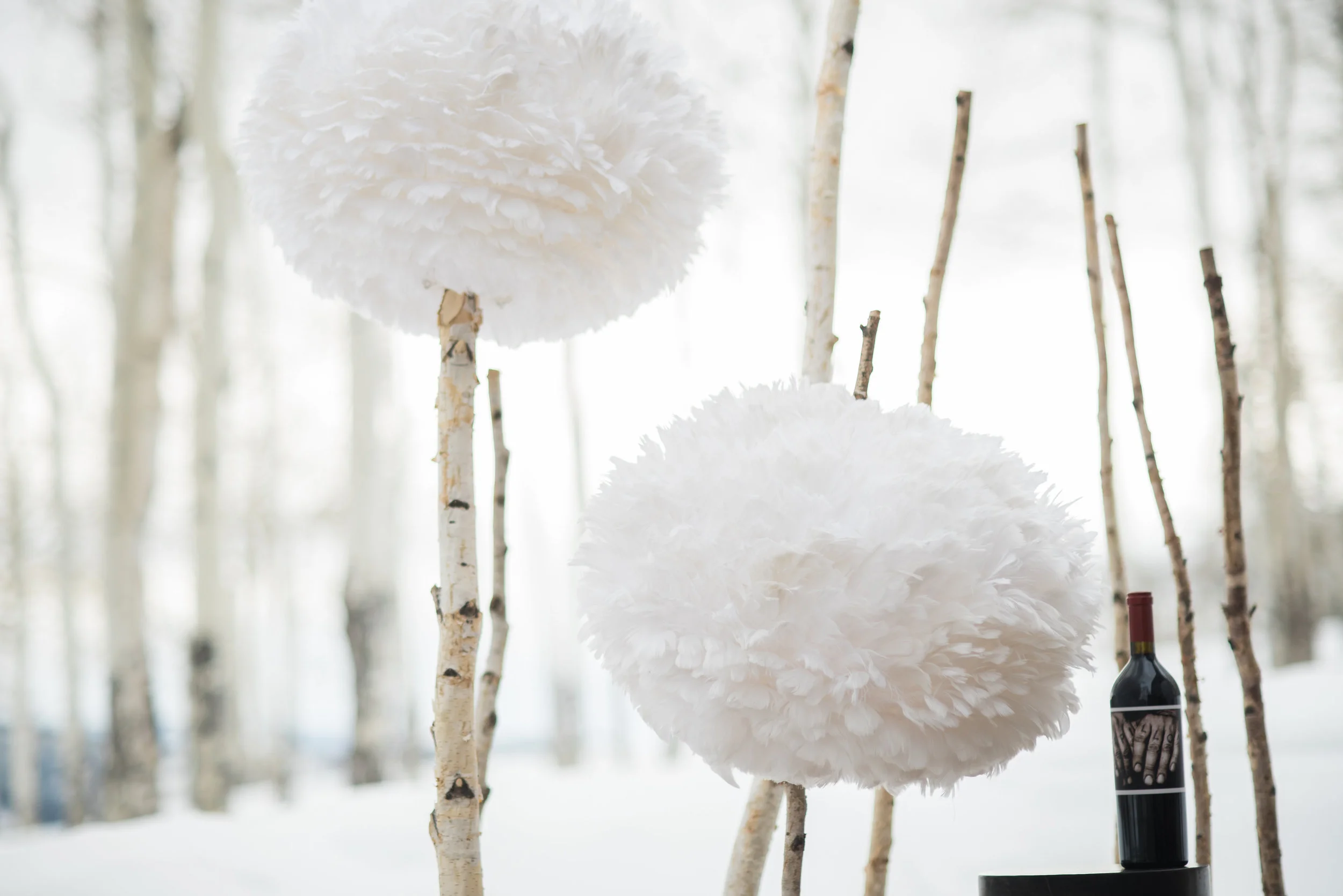 As if the packed-to-the-gills, bursting-at-the-seams snow cat ride up a hill to this venue in the middle of Winter wasn’t exciting enough, we enjoyed setting this elopement among Trappers Cabin’s dense and seemingly endless grove of aspen trees. Decor styles were varied shades of white with a modern touch of clear acrylic and then a warmer color palette of rose gold, deep reds and wood tones inside for dinner. See more at Rocky Mountain Bride.